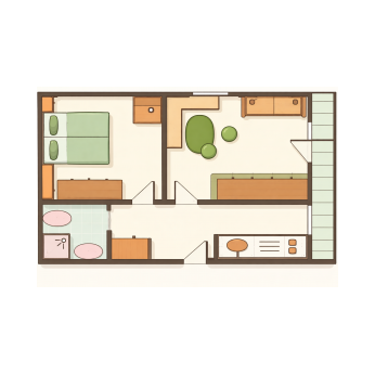 Sie wohnen auf großzügigen 45 m² mit eingerichteter Küche.