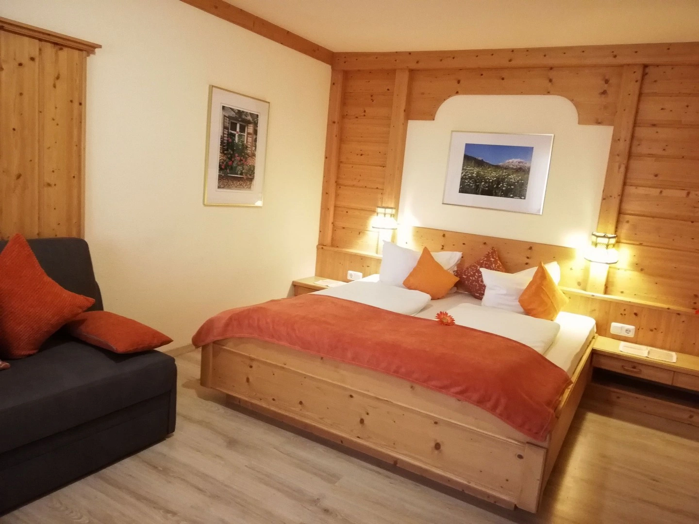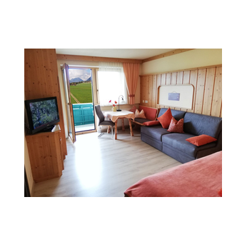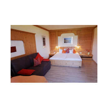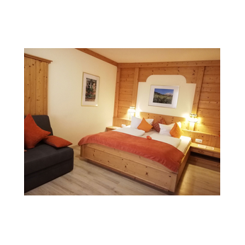 Die romantische Wohnung erwartet Sie mit einer heimeligen Tiroler Wohn-Schlafstube mit Doppelbett und gemütlicher Couch