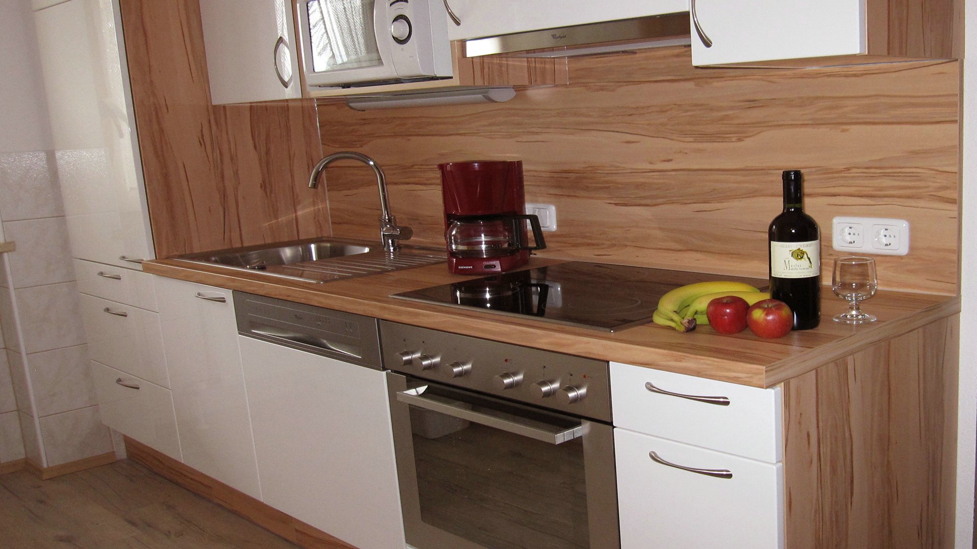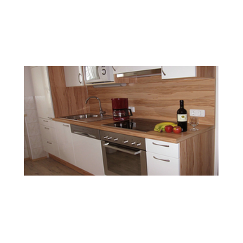 perfekt eingerichteten Küche mit allem was man so braucht. Und einem äußerst großen, möblierten Tiroler Holzbalkon.